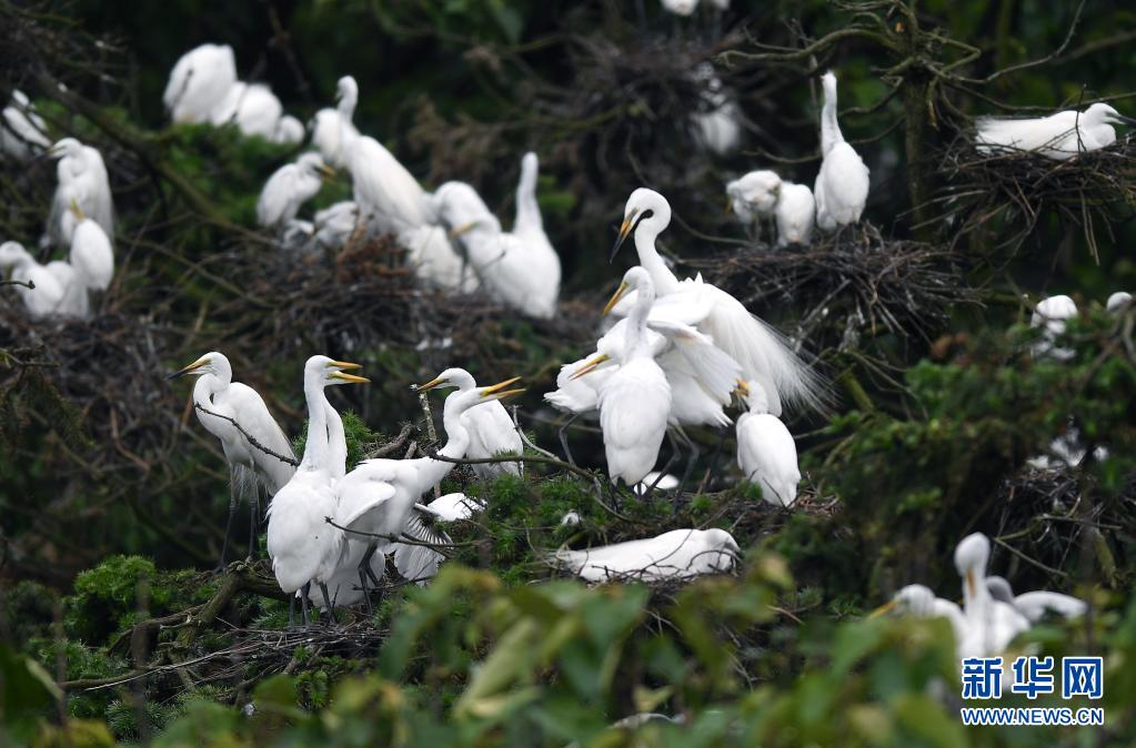 近期,在位于鄱陽(yáng)湖畔的江西省南昌市新建區(qū)象山森林公園內(nèi),已安家筑巢的鷺鳥進(jìn)入孵化哺育旺季。象山森林公園有著“鷺鳥王國(guó)”的美譽(yù),每年都會(huì)吸引白鷺、蒼鷺、夜鷺等種類的鷺鳥飛抵棲息和繁衍后代。