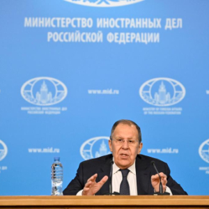 1月20日,俄罗斯外交部长拉夫罗夫在莫斯科举行的年度记者会上回答问题。新华社发(亚历山大摄)