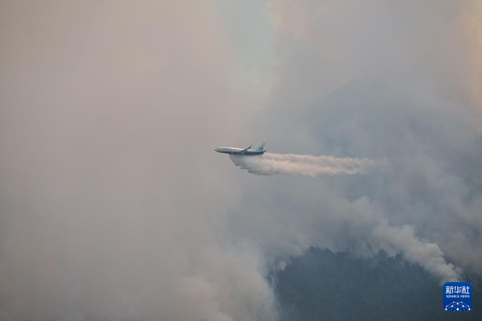 消防飞机在阿根廷南部丘布特省埃普延市扑救火灾(1月8日摄)。新华社发(马克西·约纳斯摄)