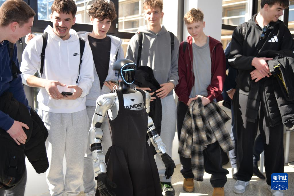 2月25日,在克罗地亚萨格勒布鲁杰尔·博什科维奇研究所,人形机器人“通卡”进行表演。新华社记者 马震 摄