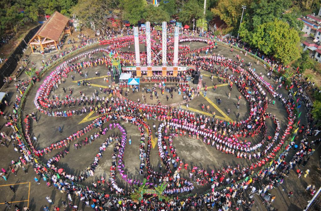 3月14日,云南省德宏傣族景颇族自治州盈江县2026年目瑙纵歌节现场(无人机照片)。新华社发(梁志强 摄)