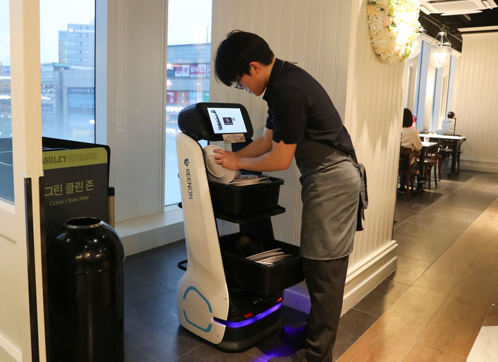 2026年2月10日,擎朗智能的服务机器人在韩国首尔市一家连锁餐厅工作。新华社记者 姚琪琳 摄