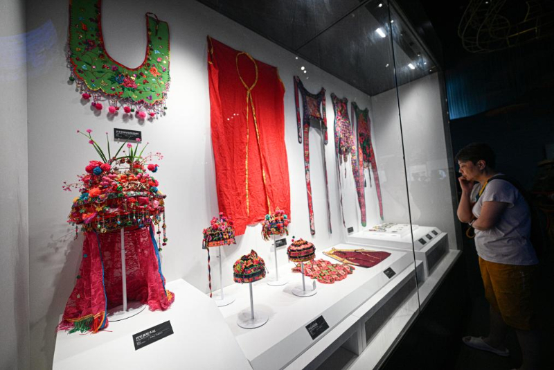 5月13日在海南疍家博物馆拍摄的疍家人婚庆服饰。