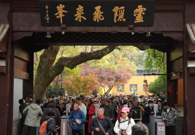 队伍中,从河北承德远道而来的郭晓冬说:“专程来杭州,听说灵隐飞来峰免票了,正好来看看这千年古刹。”他和旅伴因这项惠民政策多了一份惊喜。