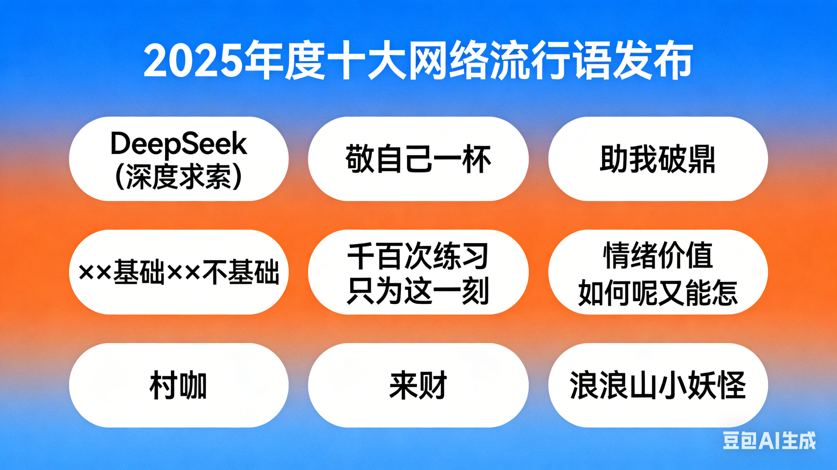 2025年度十大網(wǎng)絡(luò)流行語發(fā)布 “DeepSeek(深度求索)”“敬自己一杯”等入選