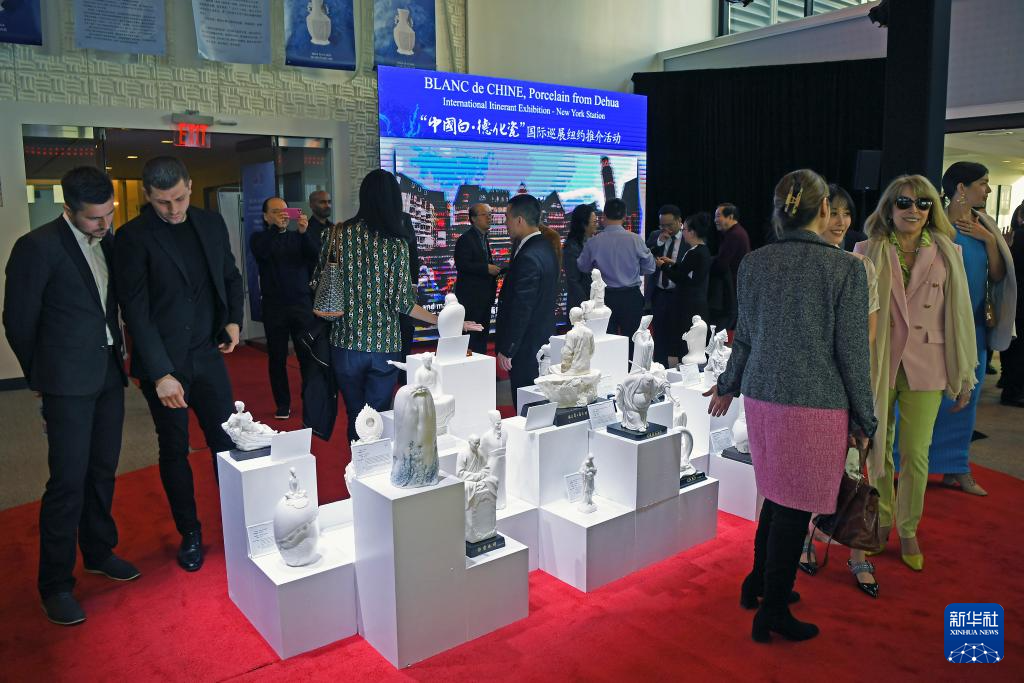 3月14日,在美国纽约,人们参加“中国白·德化瓷”国际巡展纽约推介活动。