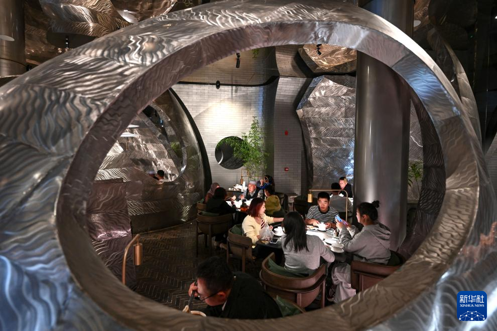 9月24日,顾客在宁夏吴忠市一家早茶店喝早茶、品尝特色小吃和面点。