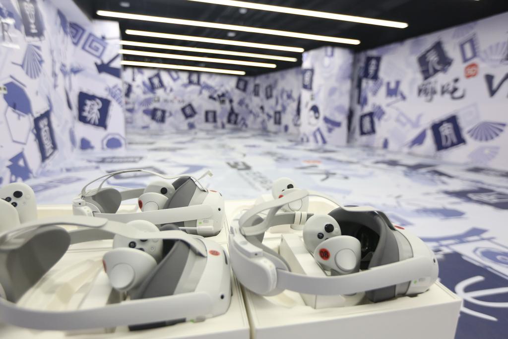 “相比于只能观看情节的传统VR电影,VR大空间项目中,观众能通过操作游戏手柄和主角一起‘打怪升级’,游戏元素的融入进一步提升了观众与内容的交互感。”公司总经理田华介绍,公司原创VR体验项目《哪吒5DVR》,不仅在国家动漫园“首演”成功,在深圳、西安等地也已落地。