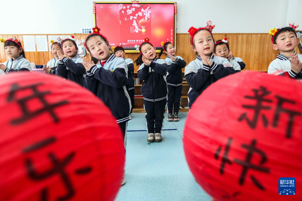 2月2日,在河南省焦作市博爱县县直幼儿园,小朋友开展文艺演出活动。
