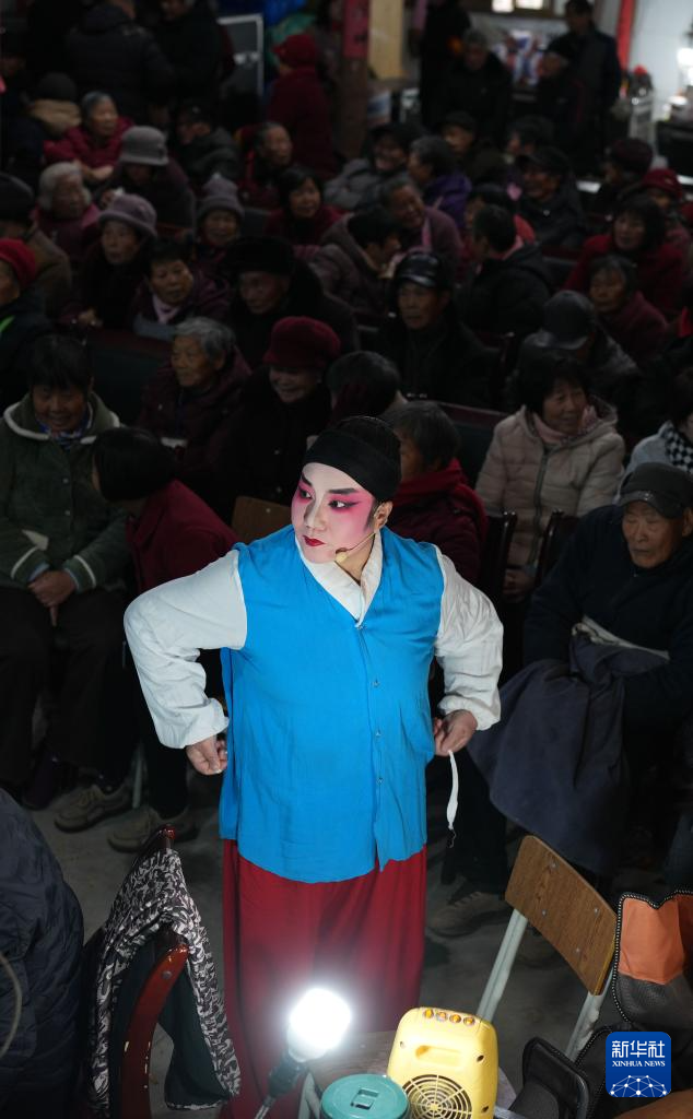 1月29日,建德市婺剧团的演员们在丽水市缙云县七里乡梅下村演出。