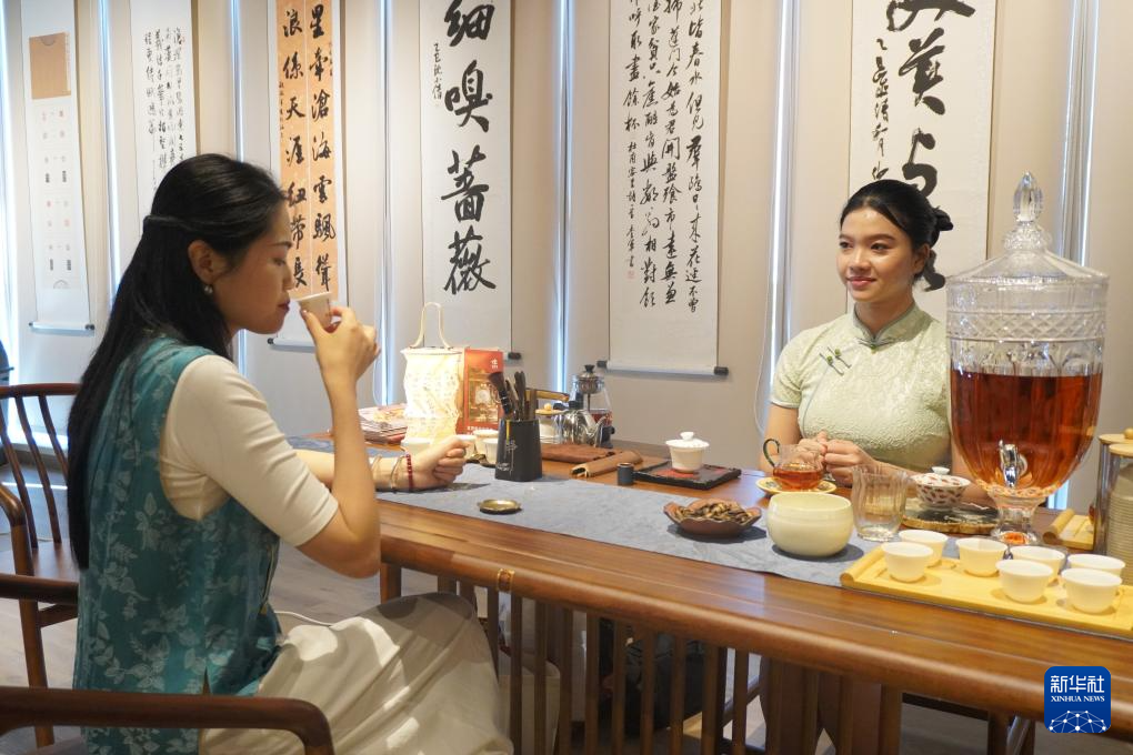 4月19日,人们在印度尼西亚首都雅加达的“国际中文日”庆祝活动中品茶。新华社记者 张怡晟 摄