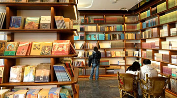4月21日,在新疆新和县依其艾日克镇木纳尔村小学,小朋友们在“图书巴扎”上阅读图书。