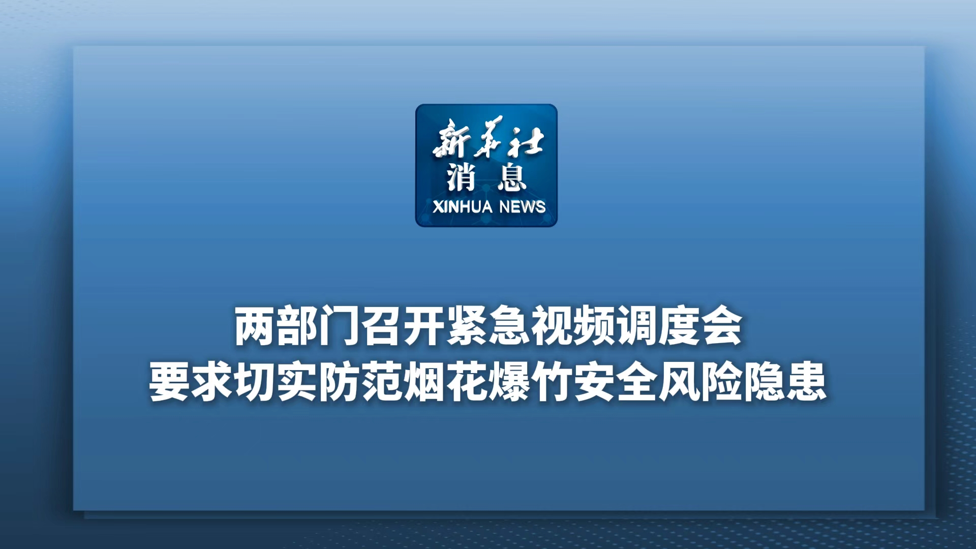 新華社消息丨兩部門召開緊急視頻調(diào)度會要求切實防范煙花爆竹安全風險隱患