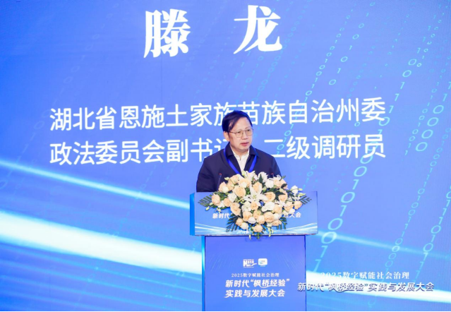 湖北省恩施土家族苗族自治州委政法委员会副书记、二级调研员滕龙以《扎实推进‘法律三进’不断夯实平安稳定根基》为题进行实践分享。