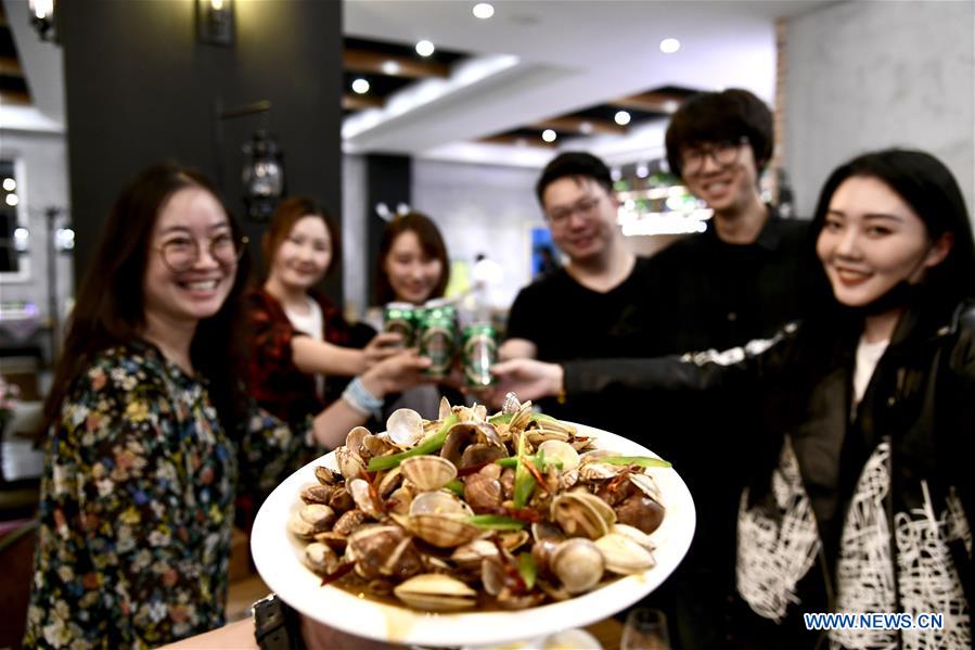 People have meal at a restaurant in Qingdao, east China's Shandong Province, May 18, 2018. The coastal city will host the 18th summit of the Shanghai Cooperation Organization (SCO) in June. (Xinhua/Guo Xulei)