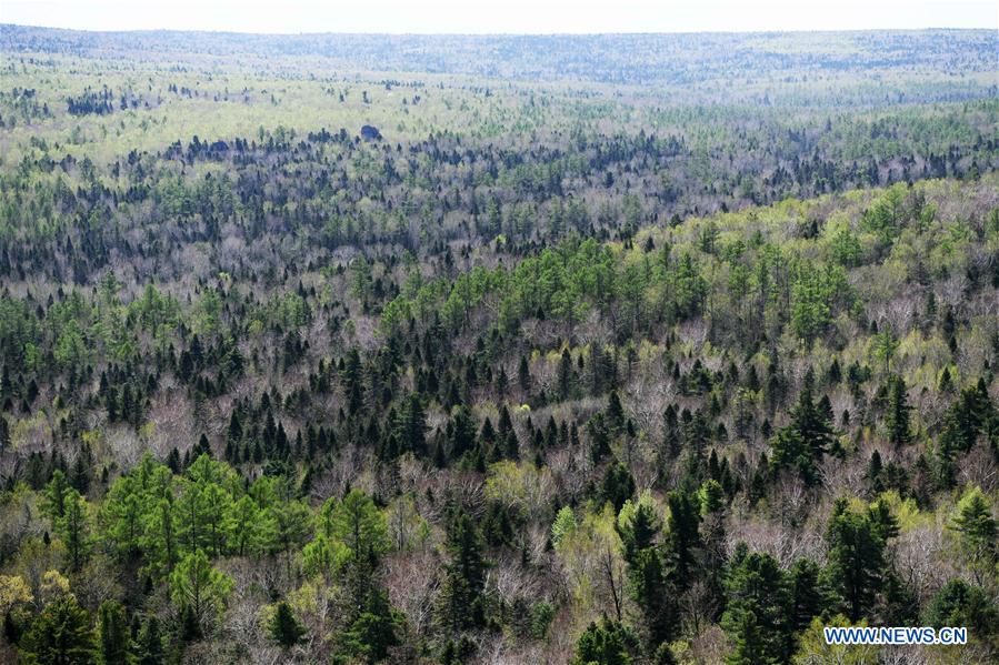 Photo taken on May 15, 2019 shows the scenery of Tangwang River forest scenic area in Yichun, northeast China's Heilongjiang Province. Located in northeast China, Heilongjiang Province is widely-known for its distinct seasons and its endeavor to promote ecological development, especially in the Greater and Lesser Khingan Mountains. The forest area in the Khingan Mountains, which is regarded as an important forest eco-function zone and a reserve of strategic significance for timber resources in China, plays an irreplaceable role in maintaining national ecological security and long-term wood supply. Based on its vast woodland and rich forest resources, Heilongjiang in recent years has been committed to developing eco-tourism in forest area to be a pillar industry, a move to diversify its tourism forms and provide high-quality services. The 2019 Beijing International Horticultural Exhibition kicked off its "Heilongjiang Day" event on Thursday. By touring the Heilongjiang Garden, visitors can catch a glimpse of Heilongjiang, a beautiful land of varied topography that is home to abundant biological species and incubates unique cultural customs. (Xinhua/Wang Jianwei)