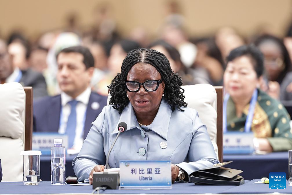 A representative from Liberia attends the plenary meeting of the Global Leaders' Meeting on Women in Beijing, capital of China, Oct. 13, 2025. (Xinhua/Zhang Yuwei)