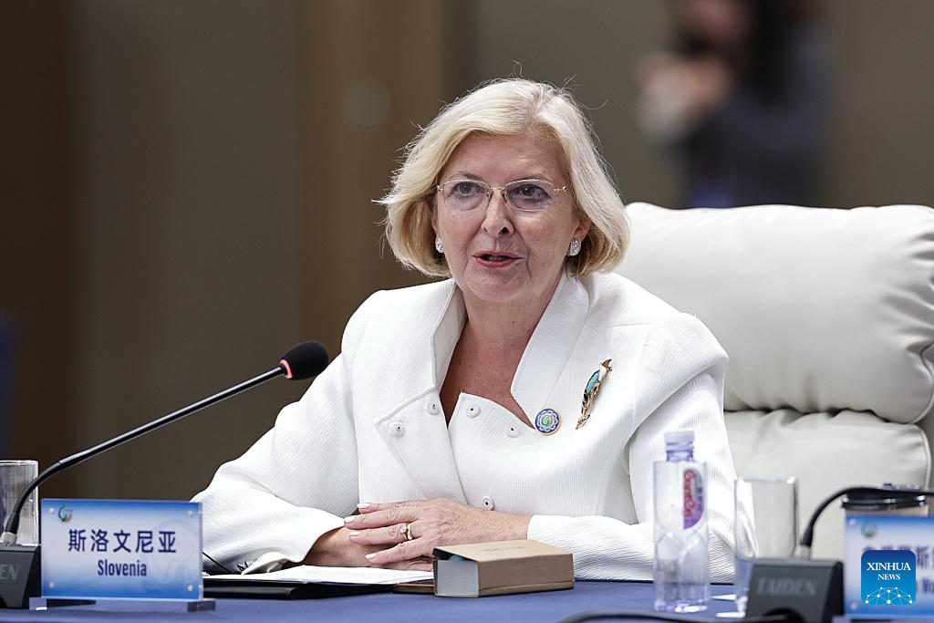 A representative from Slovenia attends the plenary meeting of the Global Leaders' Meeting on Women in Beijing, capital of China, Oct. 13, 2025. (Xinhua/Zhang Yuwei)