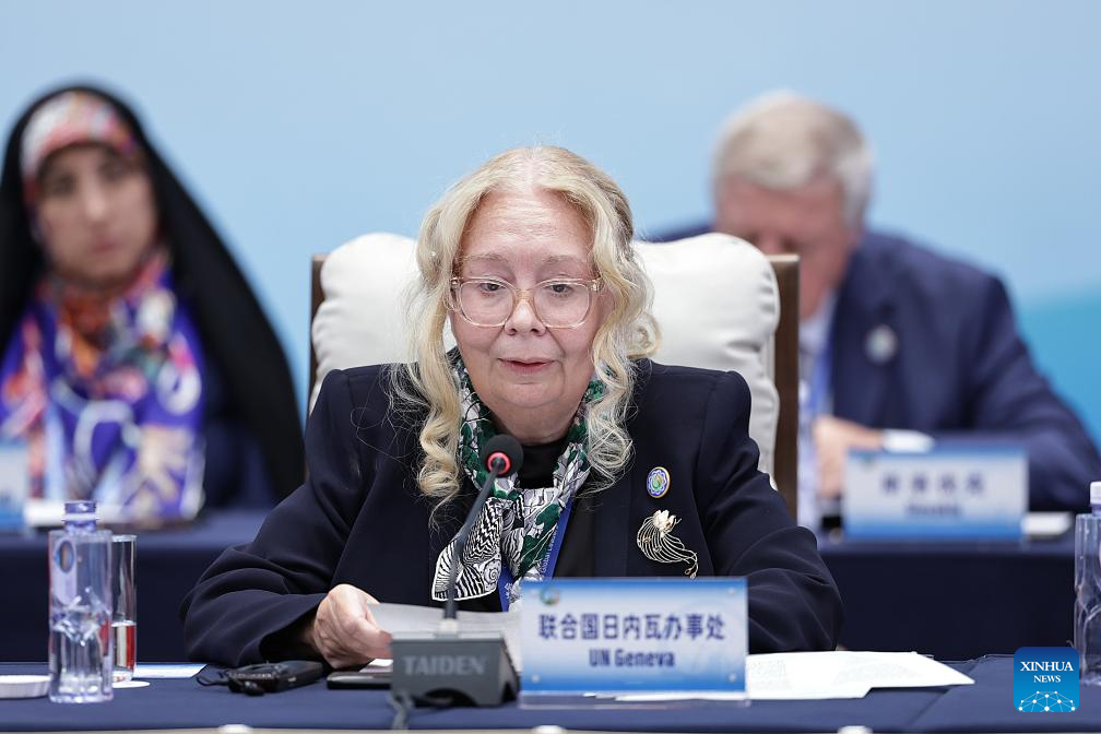 A representative from the United Nations (UN) Office at Geneva attends the plenary meeting of the Global Leaders' Meeting on Women in Beijing, capital of China, Oct. 13, 2025. (Xinhua/Zhang Yuwei)