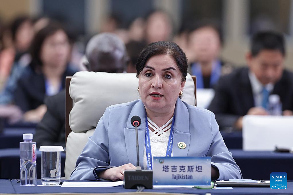 A representative from Tajikistan attends the plenary meeting of the Global Leaders' Meeting on Women in Beijing, capital of China, Oct. 13, 2025. (Xinhua/Zhang Yuwei)