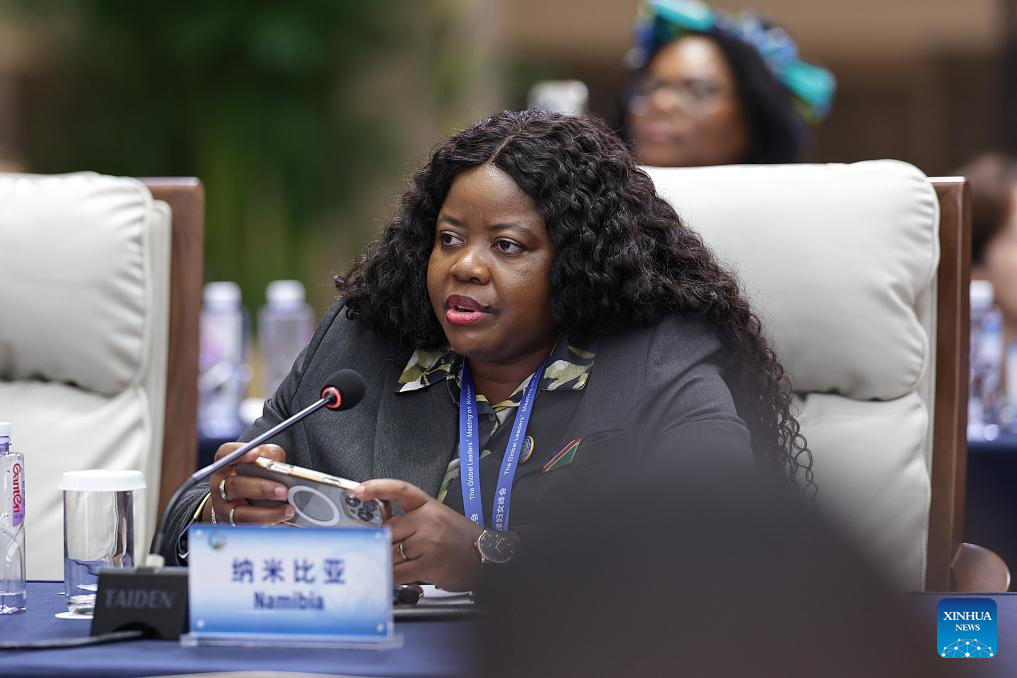 A representative from Namibia attends the plenary meeting of the Global Leaders' Meeting on Women in Beijing, capital of China, Oct. 13, 2025. (Xinhua/Zhang Yuwei)