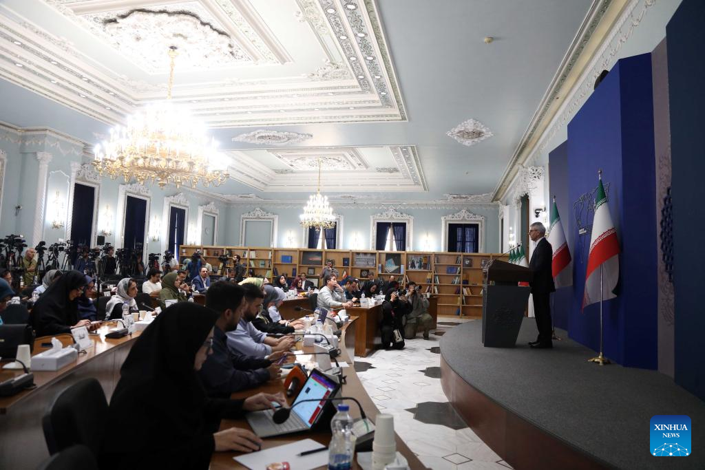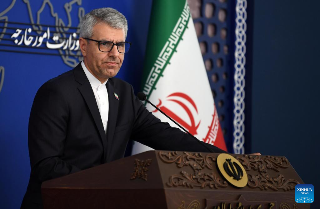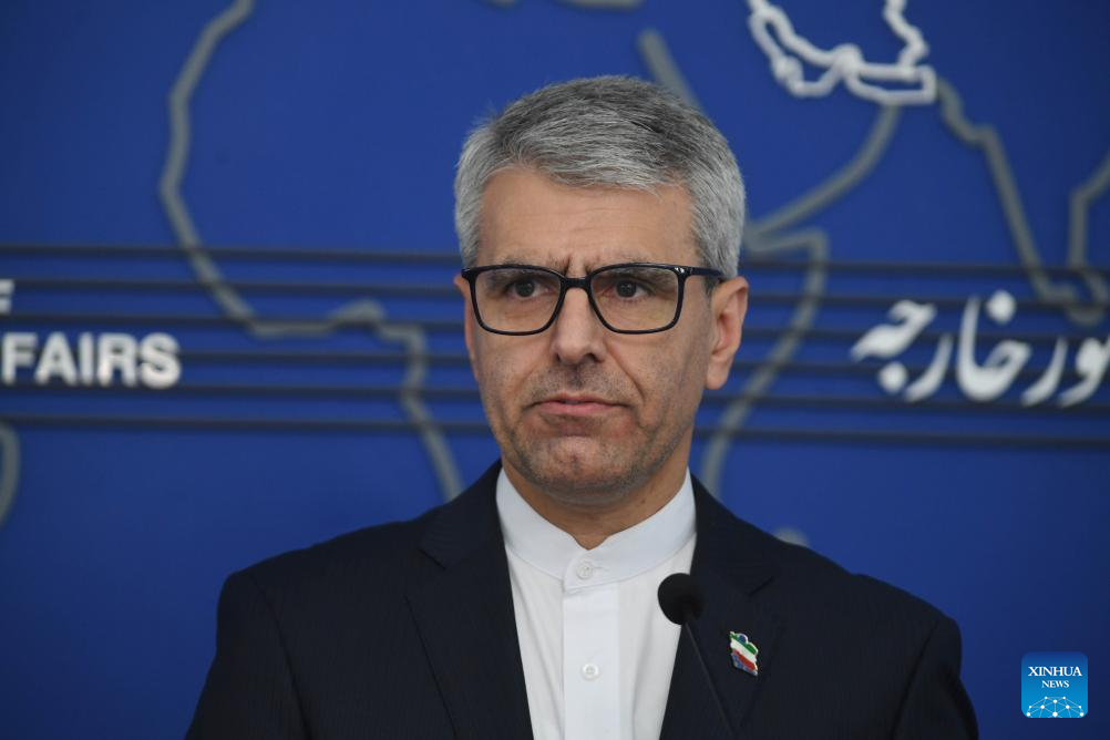 Iranian Foreign Ministry Spokesman Esmaeil Baghaei attends a press conference in Tehran, Iran, on Oct. 13, 2025. (Xinhua/Shadati)