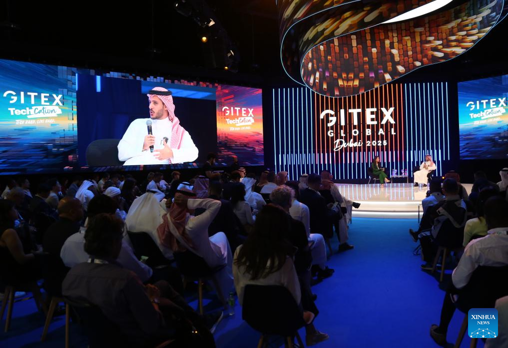 This photo taken on Oct. 13, 2025 shows a scene at a forum held during the 45th edition of GITEX Global in Dubai, the United Arab Emirates. (Xinhua/Wen Xinnian)