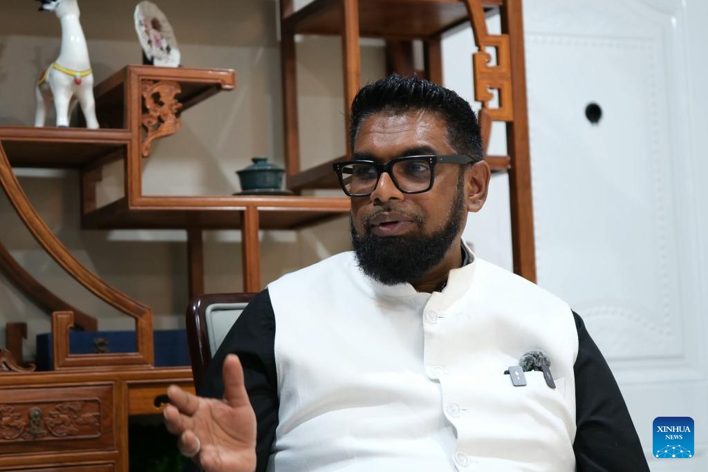 Guyanese President Irfaan Ali receives an exclusive interview with Xinhua in Georgetown, Guyana, on Oct. 3, 2025. (Xinhua/Xu Yongzheng)