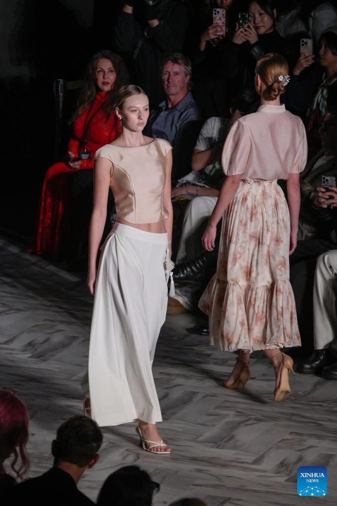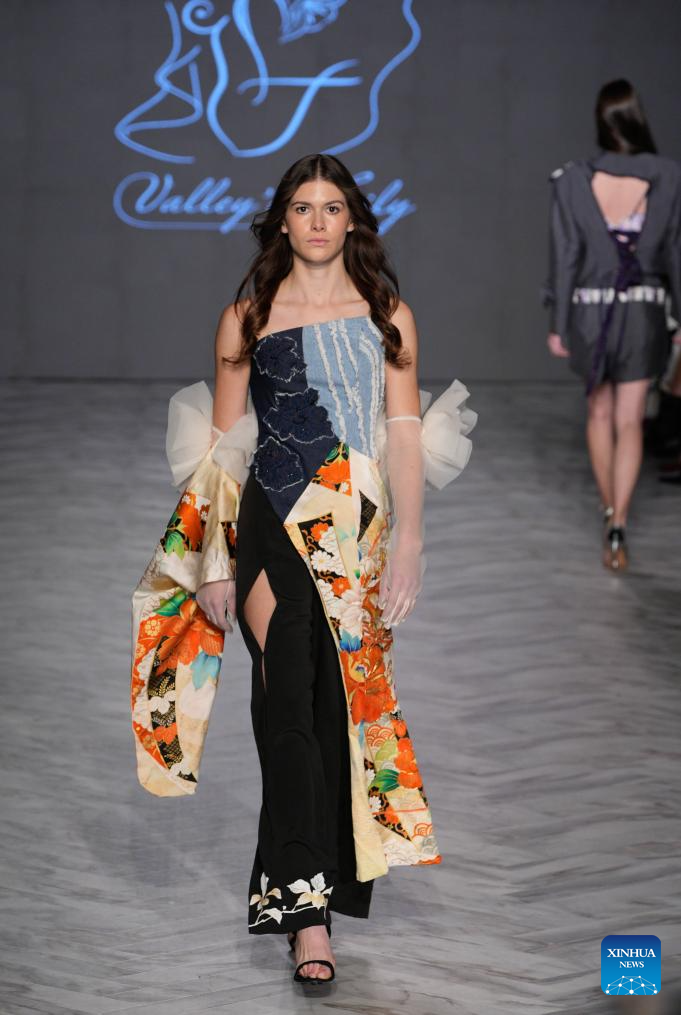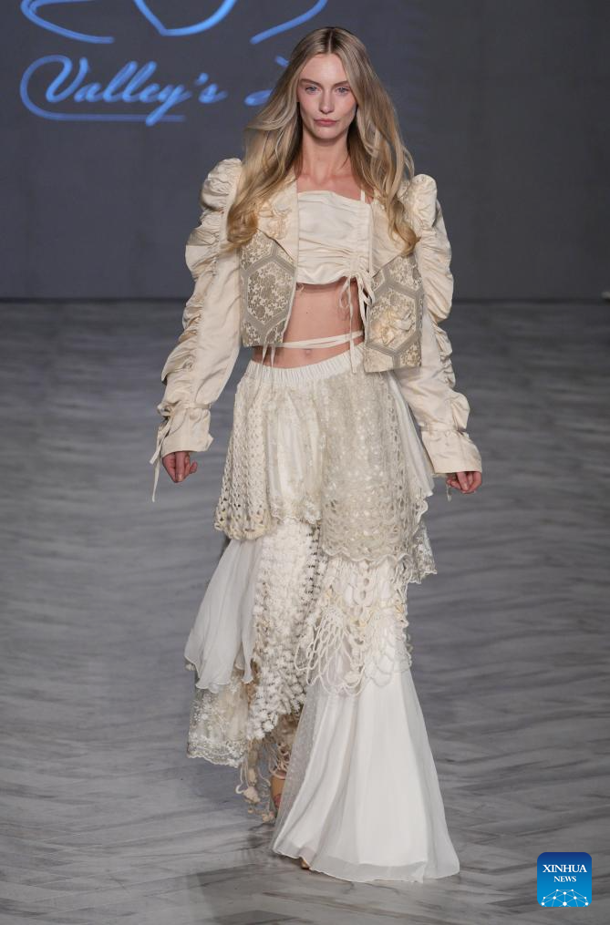 A model presents a creation from Japan's Valley's Lily during the Spring/Summer 2026 collections fashion show at Vancouver Fashion Week in Vancouver, British Columbia, Canada, Oct. 18, 2025. (Photo by Liang Sen/ Xinhua)