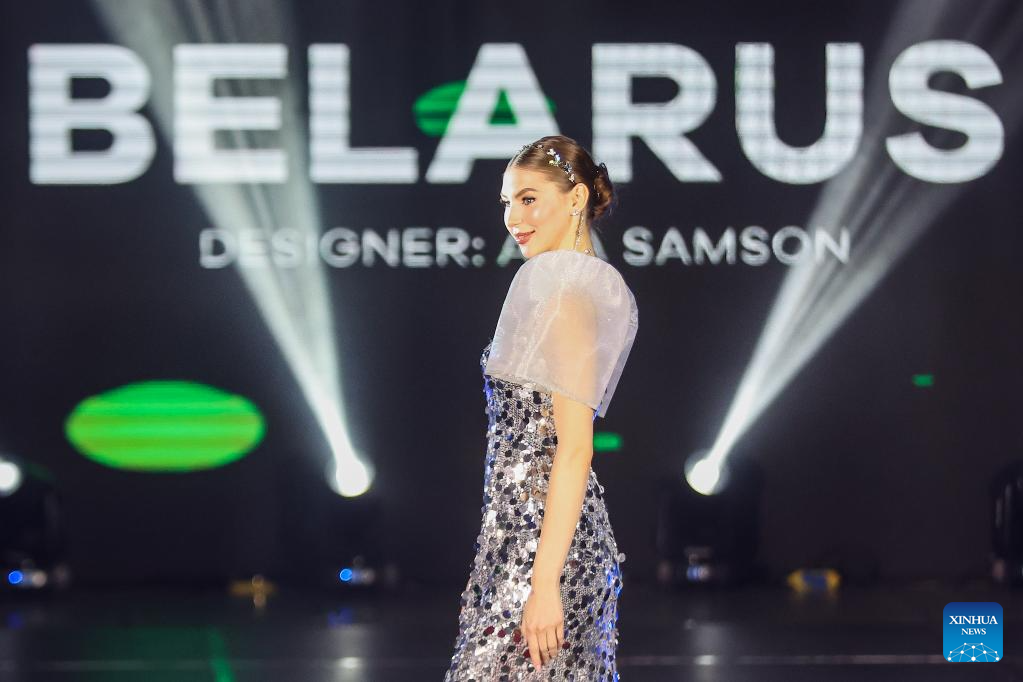 Elizaveta Moger of Belarus presents a creation during the Miss Earth 2025 Philippine Terno Fashion Show in Quezon City, the Philippines, on Oct. 22, 2025. Miss Earth 2025 candidates from various countries participated in the fashion show featuring gowns made by Filipino designers in celebration of the beauty pageant's 25th anniversary. The coronation night of Miss Earth 2025 will be held on Nov. 5. (Xinhua/Rouelle Umali)