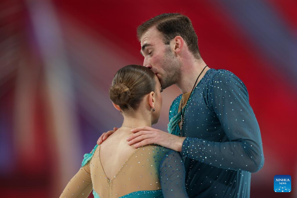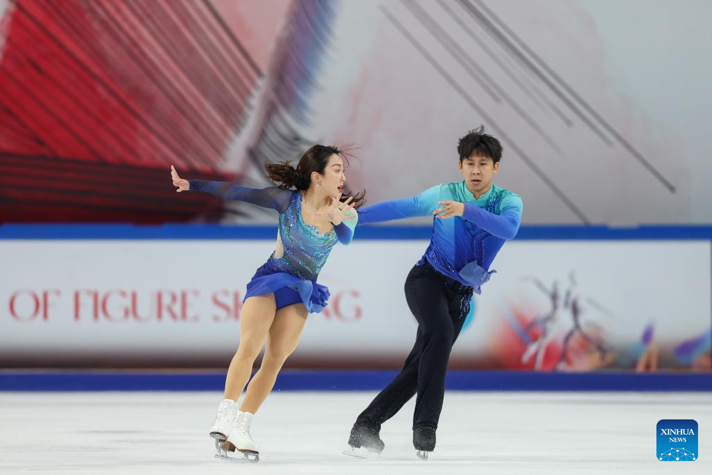 China's pairs Wang Shiyue and Liu Xinyu, Ren Junfei and Xing Jianing, and Xiao Zixi and He Linghao finished at the bottom of the standings among teams that competed, after Americans Caroline Green and Michael Parsons withdrew from the free dance after Parsons suffered an injury in Friday's rhythm dance.