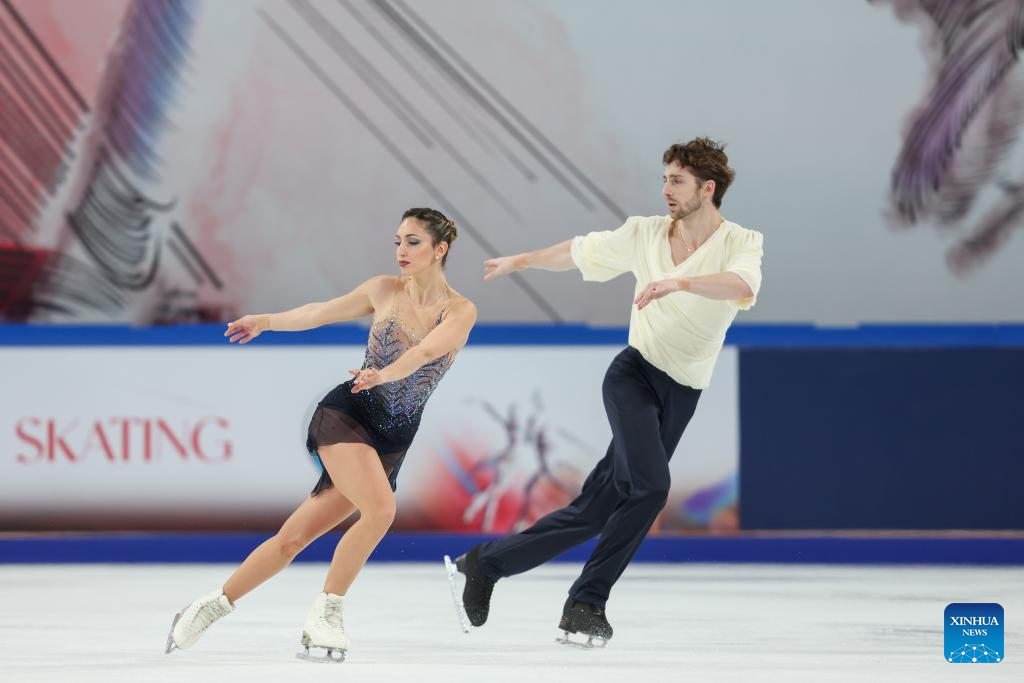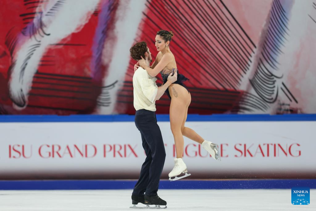 Sara Conti (R)/Niccolo Macii of Italy perform during the pair skating free skating at the Cup of China ISU Grand Prix of Figure Skating 2025 in southwest China's Chongqing Municipality, on Oct. 25, 2025. (Xinhua/Huang Wei)