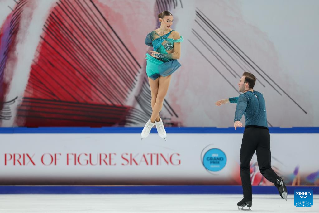 Anastasiia Metelkina (R)/Luka Berulava of Georgia perform during the pair skating free skating at the Cup of China ISU Grand Prix of Figure Skating 2025 in southwest China's Chongqing Municipality, on Oct. 25, 2025. (Xinhua/Huang Wei)