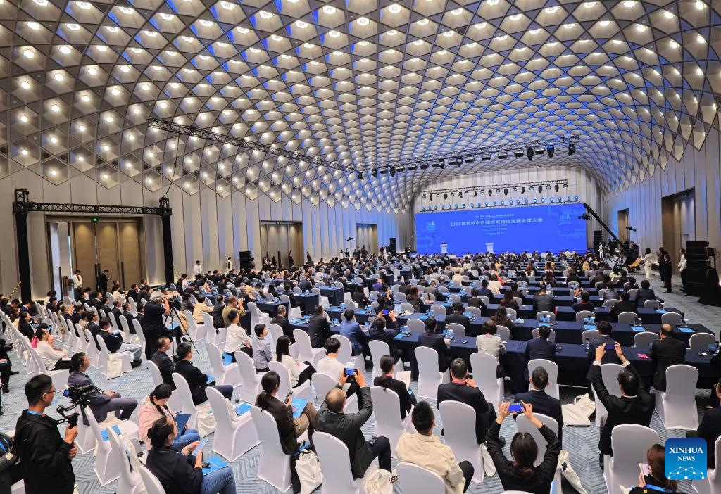 This photo taken on Oct. 26, 2025 shows the 2025 SDG Cities Global Conference in east China's Shanghai. Themed "Innovative Development Towards People-Centered Smart Cities" this year, the 2025 SDG Cities Global Conference kicked off here on Sunday. (Xinhua/Fang Zhe)