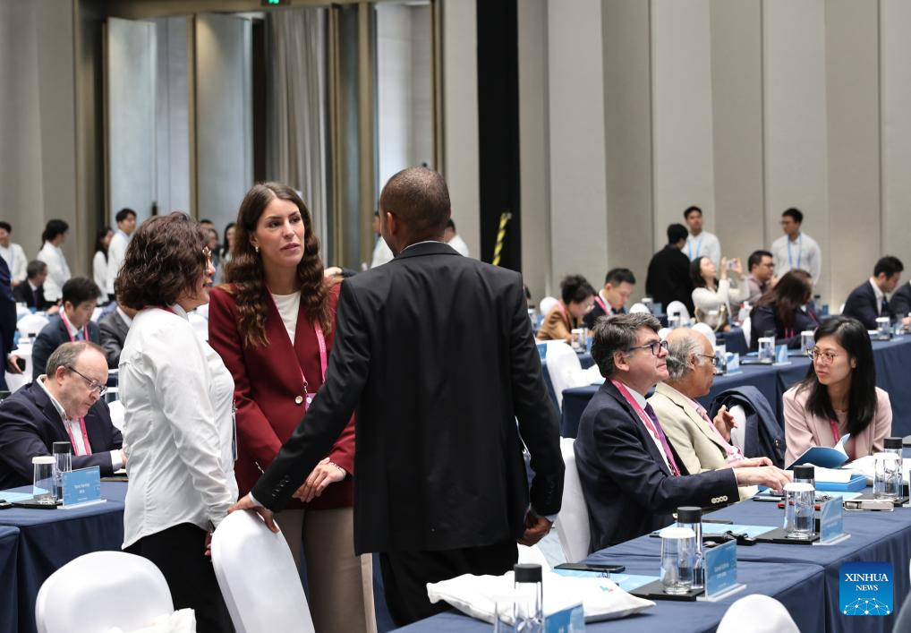 Guests communicate at the venue of the 2025 SDG Cities Global Conference in east China's Shanghai, Oct. 26, 2025. Themed "Innovative Development Towards People-Centered Smart Cities" this year, the 2025 SDG Cities Global Conference kicked off here on Sunday. (Xinhua/Fang Zhe)