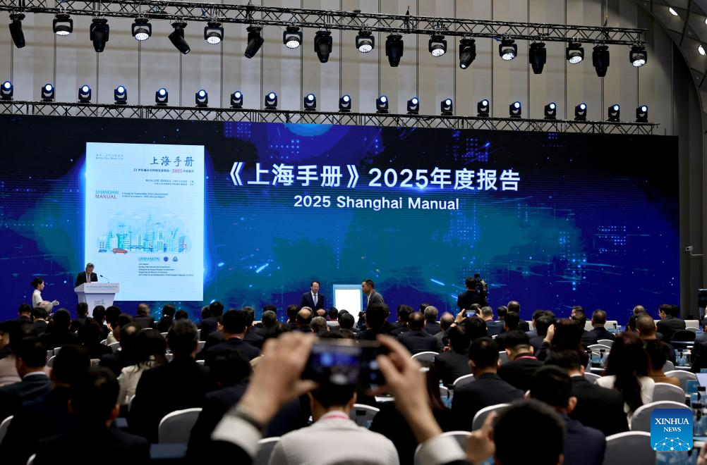 The 2025 Shanghai Manual is released during the 2025 SDG Cities Global Conference in east China's Shanghai, Oct. 26, 2025. Themed "Innovative Development Towards People-Centered Smart Cities" this year, the 2025 SDG Cities Global Conference kicked off here on Sunday. (Xinhua/Fang Zhe)
