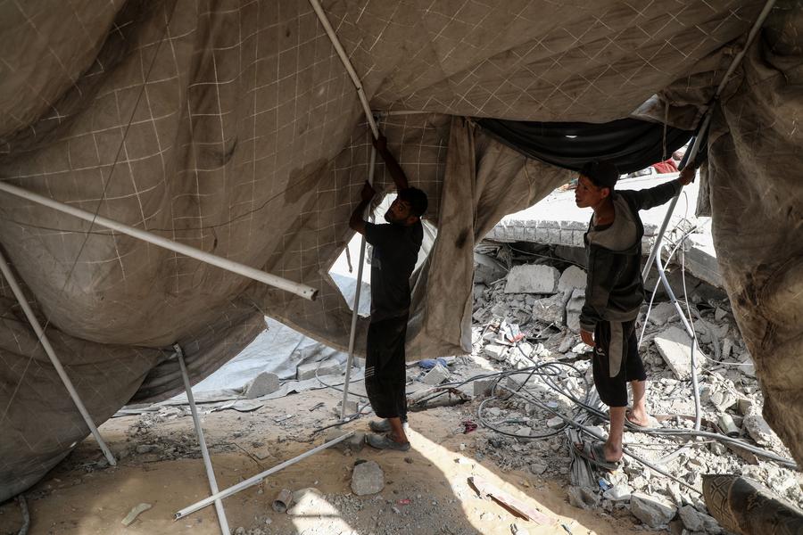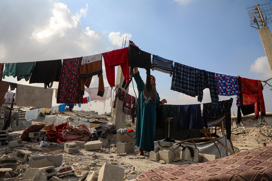 GAZA, Oct. 26 (Xinhua) -- The UN estimates that approximately 92 percent of all residential buildings in Gaza -- around 436,000 homes -- have been damaged or destroyed since the start of the conflict.