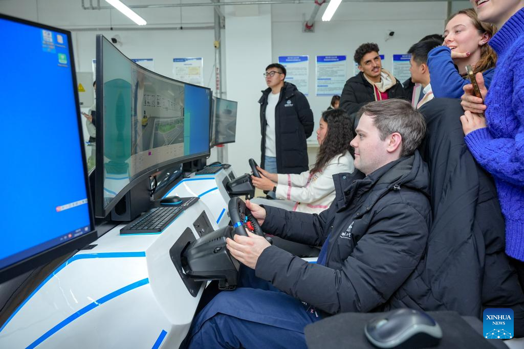 Chinese and British students visit the future transportation international innovation platform of the School of Transportation Science and Engineering of Harbin Institute of Technology (HIT) in Harbin, northeast China's Heilongjiang Province, Jan. 8, 2026. (Harbin Institute of Technology/Handout via Xinhua)