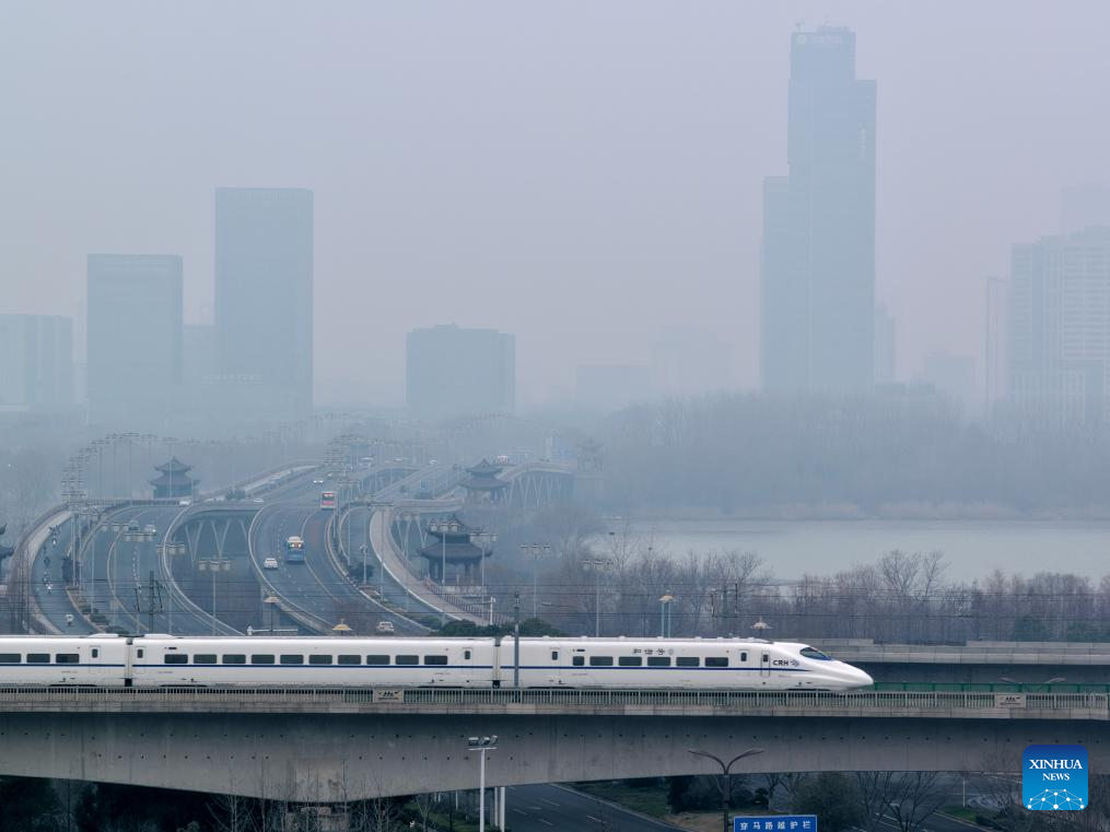 A bullet train runs in Shijiazhuang City of north China's Hebei Province, Jan. 25, 2026. A new train schedule will be put into effect in China from Jan. 26. 2026. (Photo by Liang Zidong/Xinhua)