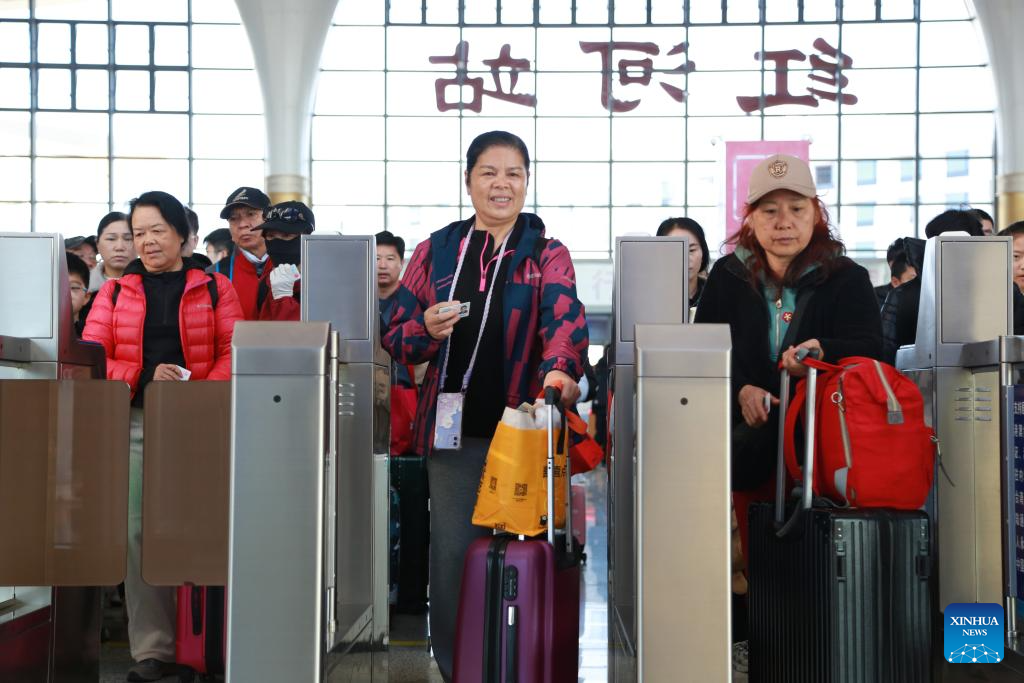 Passengers check in at the Honghe Railway Station in Hani-Yi Autonomous Prefecture of Honghe in southwest China's Yunnan Province, Jan. 25, 2026. A new train schedule will be put into effect in China from Jan. 26. 2026. (Photo by Xue Yingying/Xinhua)