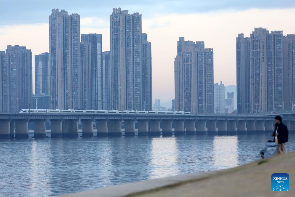 A bullet train runs in Yueqing City, east China's Zhejiang Province, Jan. 25, 2026. A new train schedule will be put into effect in China from Jan. 26. 2026. (Photo by Cai Kuanyuan/Xinhua)