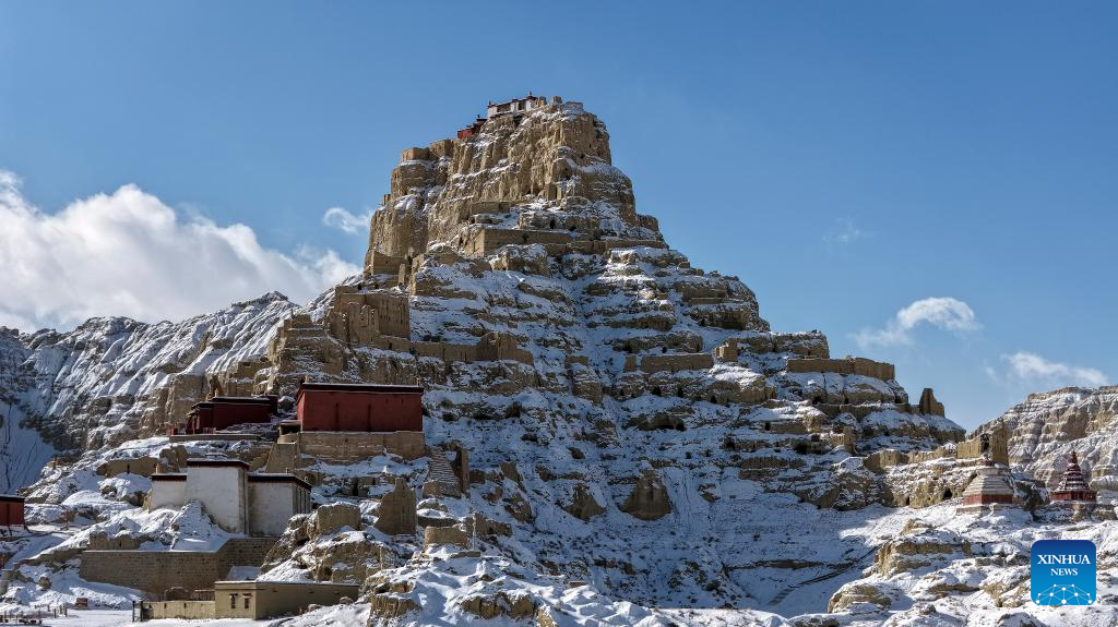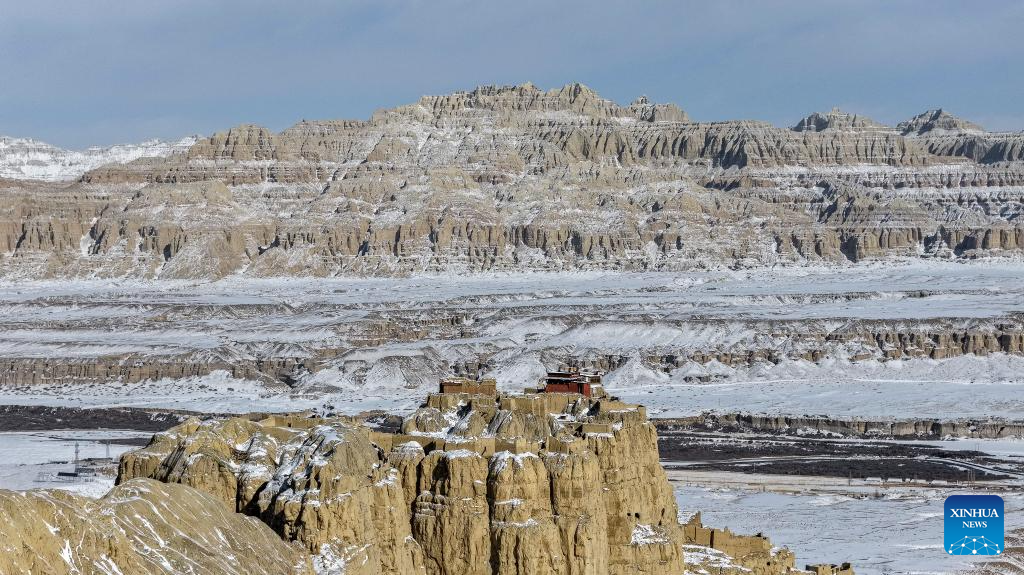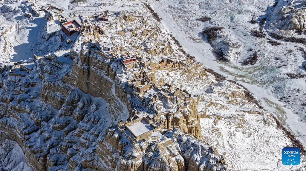 This aerial drone photo shows the ruins of the Guge Kingdom in Zanda county of Ngari prefecture, southwest China's Xizang Autonomous Region, Jan. 24, 2026. (Photo by Tinzen Tseten/Xinhua)