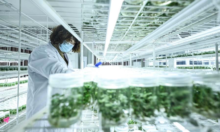 A staff member works at a breeding facility of a strawberry research institute in Donggang City, Dandong, northeast China's Liaoning Province, Jan. 12, 2026. (Xinhua/Pan Yulong)