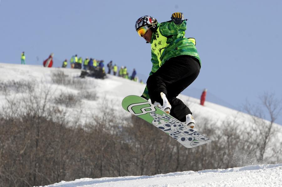 A contestant competes during a local snowboarding competition held at Guaipo ski resort in Shenyang, northeast China's Liaoning Province, Feb. 26, 2012. (Xinhua)A citizen is about to go snowboarding at Dongbeiya International Ski in Shenyang, northeast China's Liaoning Province, Dec. 16, 2009. (Xinhua/Li Gang) ■