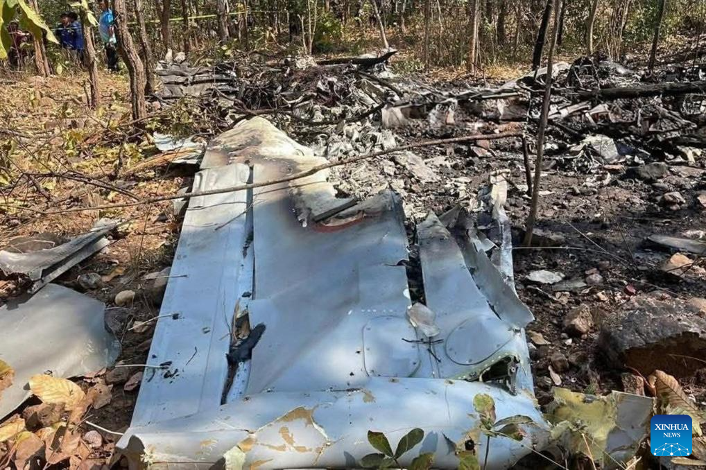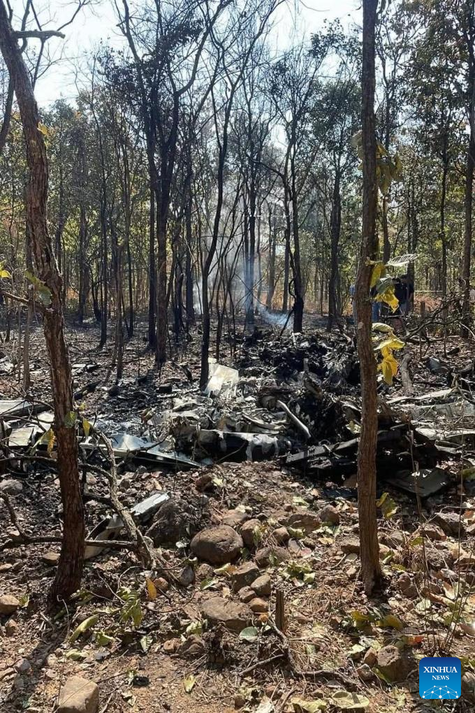 This photo taken with a mobile photo on Jan. 29, 2026 shows the site of a military aircraft crash in Chiang Mai, Thailand. An AT-6 military aircraft crashed in Chiang Mai's Chom Thong district in Thailand on Thursday, leaving two dead, local media reported. (Xinhua)