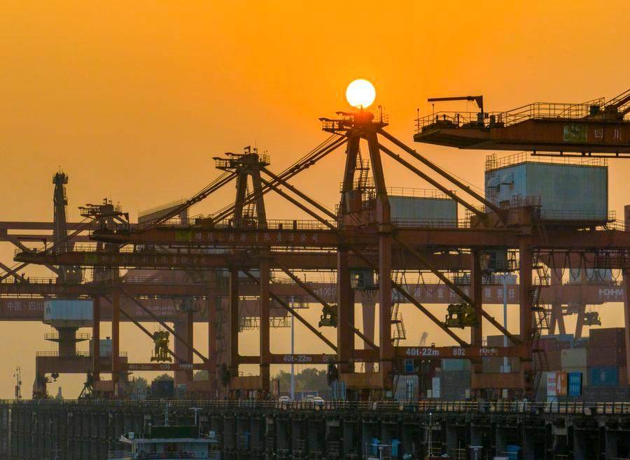 A drone photo taken on Dec. 10, 2025 shows a view of the Yibin Port in Yibin, southwest China's Sichuan Province. (Photo by Zhuang Geer/Xinhua)