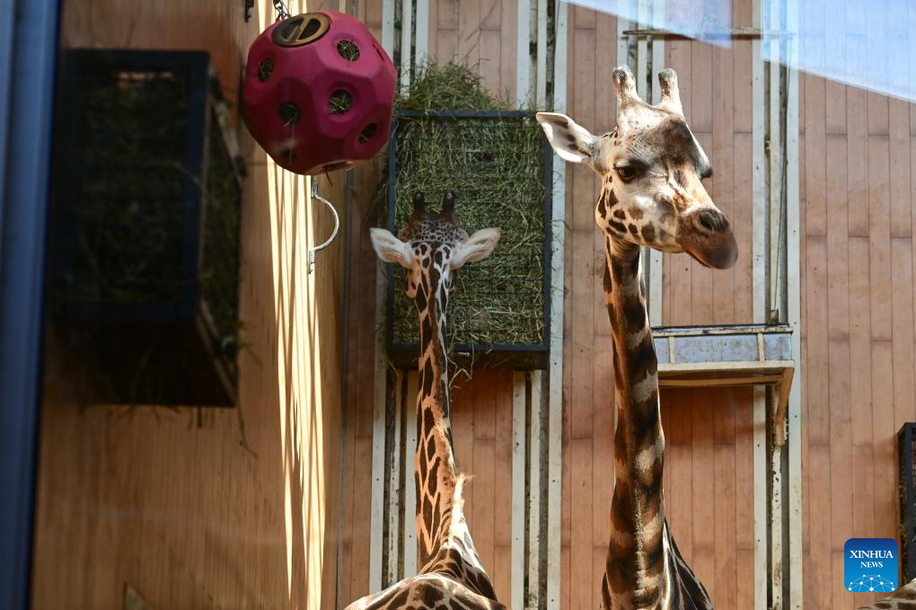Giraffes are seen indoors at the Warsaw Zoo in Warsaw, Poland, Feb. 26, 2026. (Photo by Aleksky Witwicki/Xinhua)