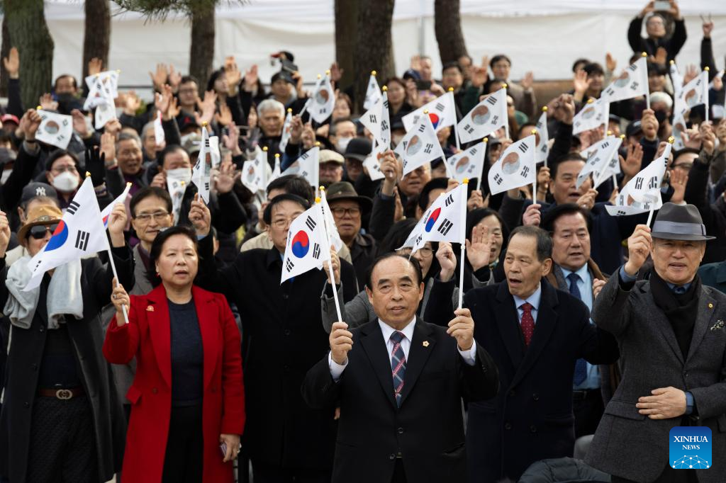 People attend an event marking the anniversary of the 1919 March 1 Independence Movement that took place during the 1910-45 Japanese colonization of the Korean Peninsula, in Seoul, South Korea, March 1, 2026. (Photo by Jun Hyosang/Xinhua)