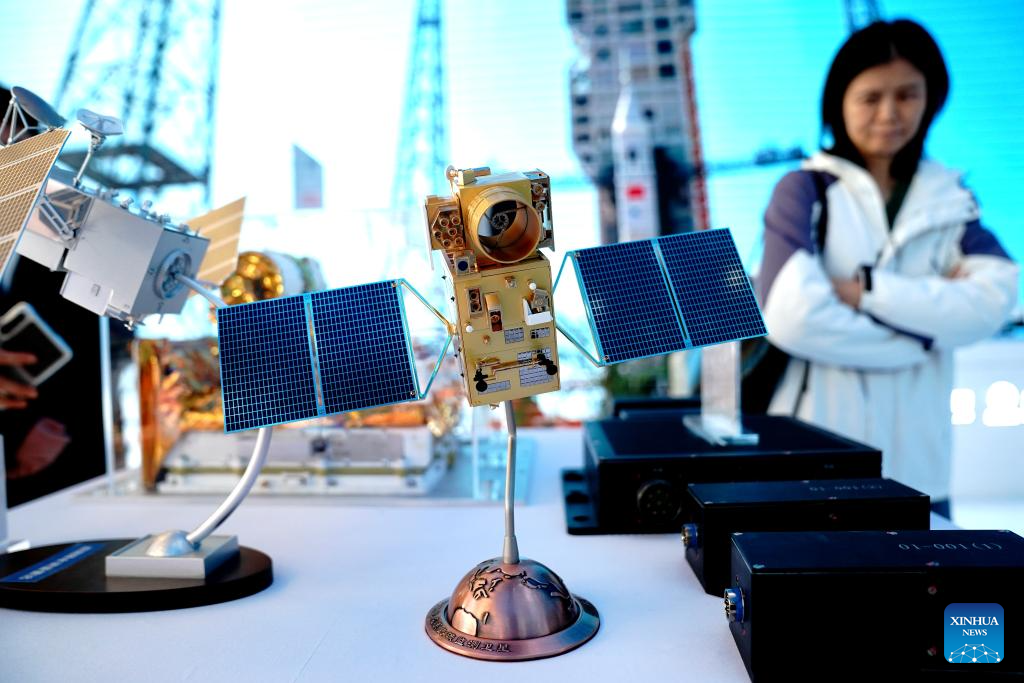People view a satellite load-bearing tube during the 2026 Shanghai Commercial Aerospace Conference & Exhibition at Shanghai New International Expo Center in Shanghai, east China, March 12, 2026. This event, also the founding session, kicked off here on Thursday and will last till March 14. (Xinhua/Zhang Jiansong)