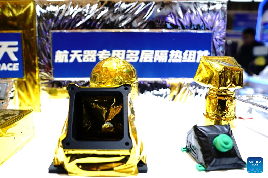 This photo taken on March 12, 2026 shows multi-layer thermal insulation components for spacecraft during the 2026 Shanghai Commercial Aerospace Conference & Exhibition at Shanghai New International Expo Center in Shanghai, east China. This event, also the founding session, kicked off here on Thursday and will last till March 14. (Xinhua/Zhang Jiansong)
